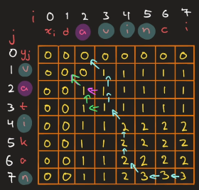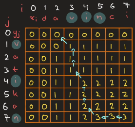 LCS handler om å finne største delsekvens mellom to arrays