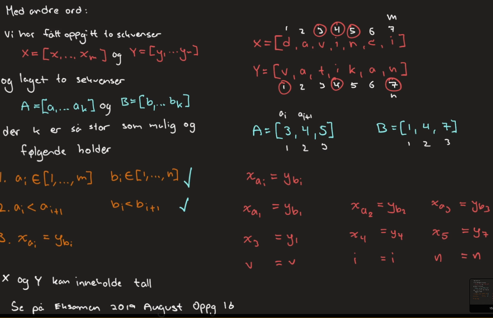 Gitt en sekvens , kan vi finne en Delsekvens (Subsequence).