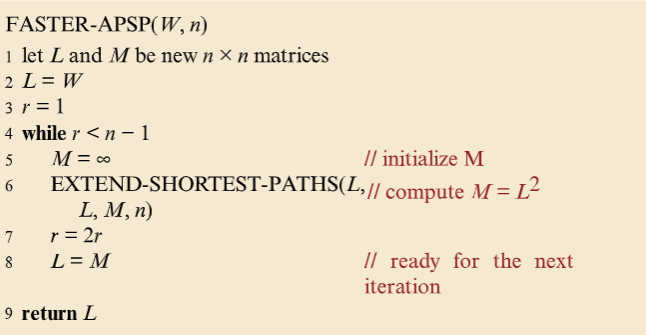 Til forskjell fra SLOW-APSP utnytter denne den assosiative egenskapen ved matrisemultiplikasjon, som reduserer kjøretiden.