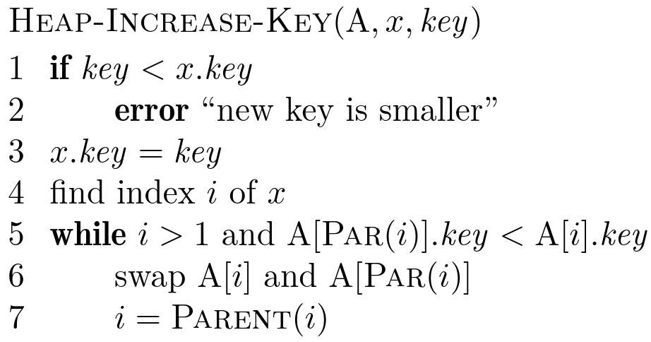 We increase our desired node value, and then fix the heap so it is correct Vi stiger til riktig key, i motsetning til Max-Heapify der vi synker