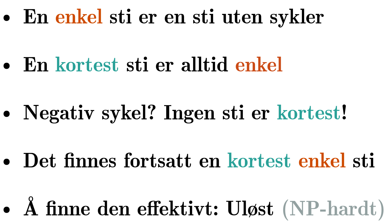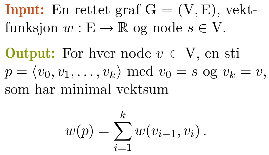 Til forskjell på Minimale spenntrær, som tar for seg uretta grafer, tar korteste vei problemer for seg rettede grafer. Vi bryr oss også om startnoden.