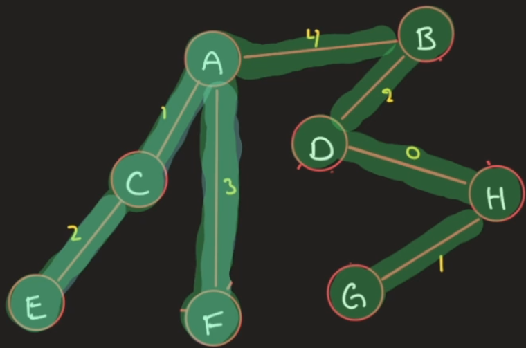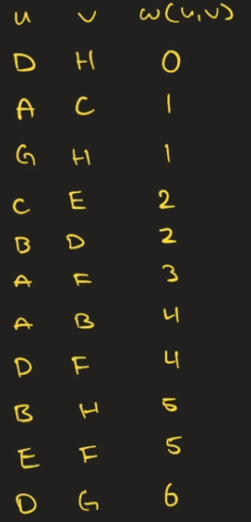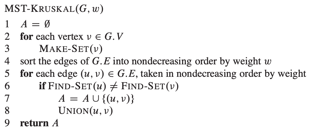 Sorter alle kanter i stigende rekkefølge. Dersom de ikke allerede er en mengde, gjør de til en mengde, og gå videre. Gjør dette til du har et minimalt spenntre.