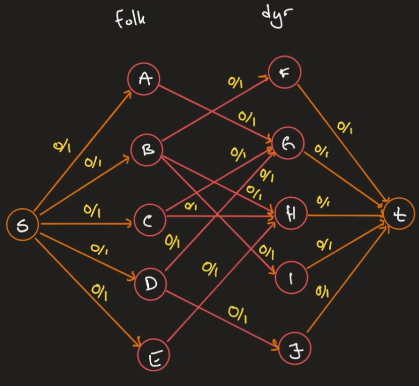 Nå kan det løses med enten Ford-Fulkerson eller Edmonds-Karps algoritme.