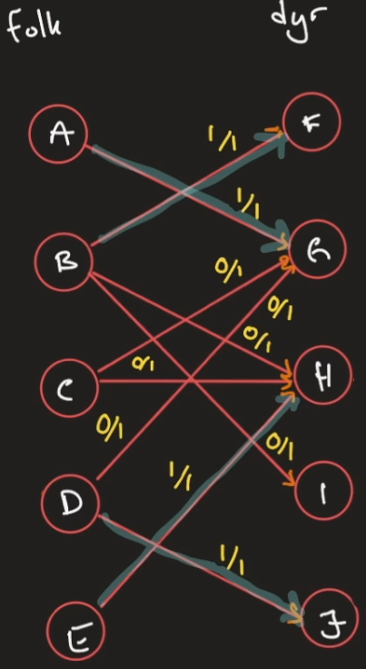 Dette kan løses med Maksimal flyt - Maximum flow og Heltallsteoremet