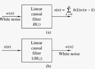 Idea: A random Wide-sense stationary process can be represented as the output of a causal and causally invertible linear system excited by a white noise process.