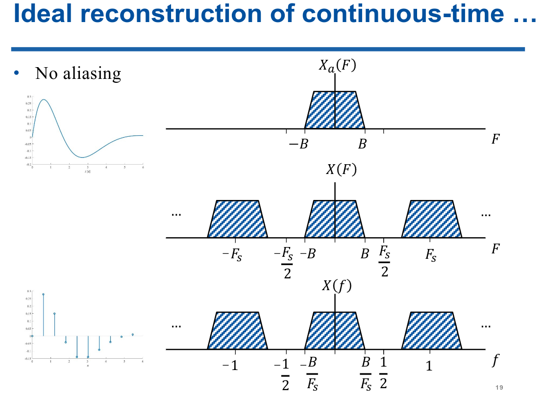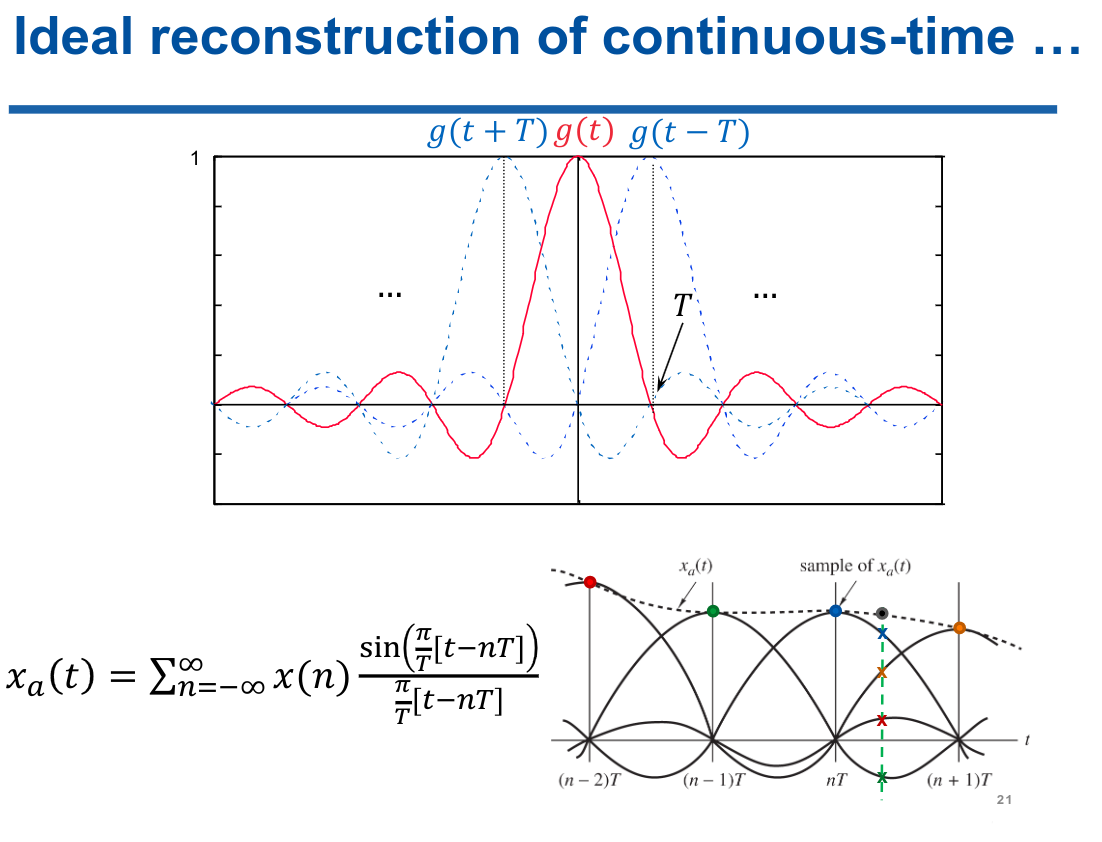 Literature: *page=400 We use a sinc pulse at each sampled value and add them to reconstruct the signal