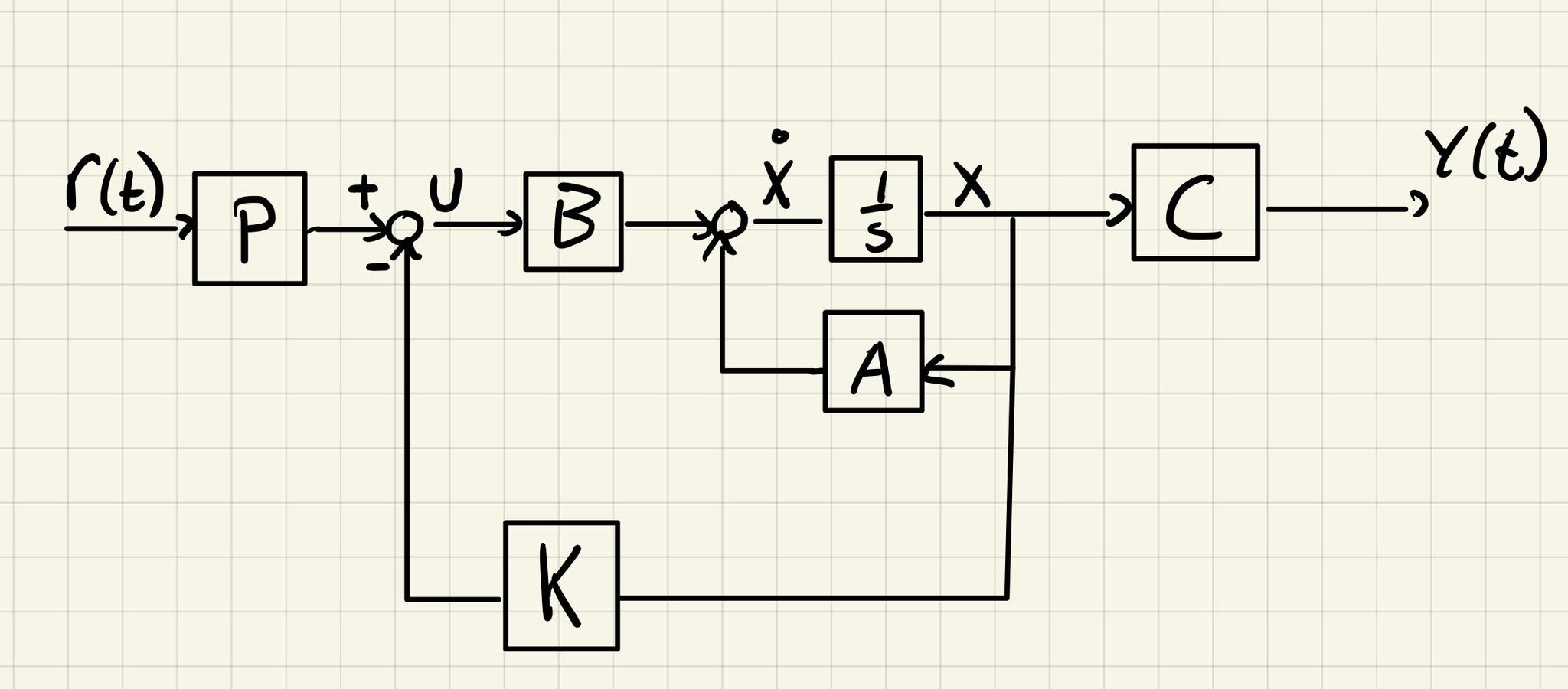 \dot{x} &= Ax-BK(e+x) \\ \dot{x} &= (A-BK)x - BKe \end{align}We can therefore write our system as