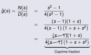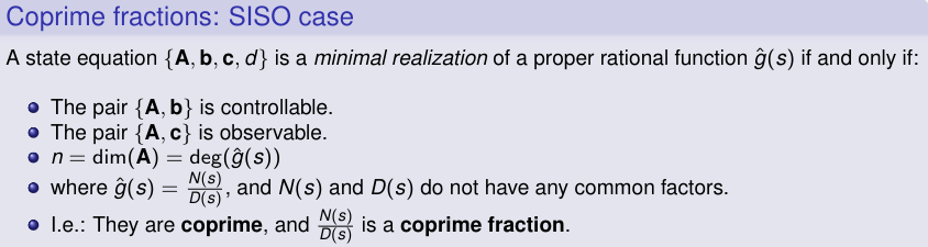 If the order of the transfer function after removing common factors, the system is comprime, and we have a comprime fraction.
