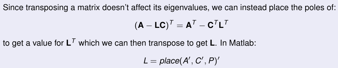 This means that, by modifying L, we can make the new system stable, even if the original system was unstable