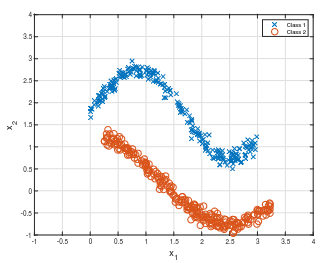 It is easy to seperate the classes, but there exist no simple line, plane or hyperplane to separate them.