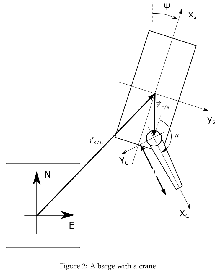 The crane reference frame (c-frame) relative to the barge reference frame (s-frame) is given by