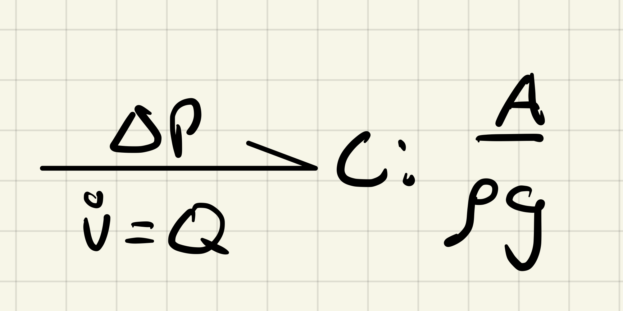 Reynolds Number Accumulators We have ΔpΔp=pT−pA=ρgh=Aρg(Δh)=Aρg And the volume V=ρgAΔp Since we know that q=Ce, we get Fluid Comprehensibility We therefore get the following 0-junction Where kβ=−V1⋅∂pT∂V=−V∂V∂pT