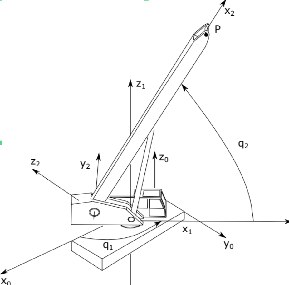 Goal: Express the position at the tip of the crane relative to the point 0 (Origo in the 0-Frame).