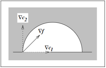 a) Linear Independence Constraint Qualification] The gradients of the active constraints that are active at the optimal solution are