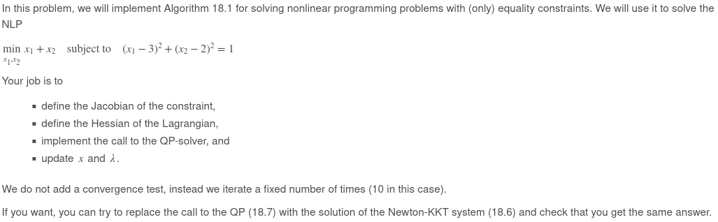 % Local SQP method (Algorithm 18.1 in Nocedal & Wright)