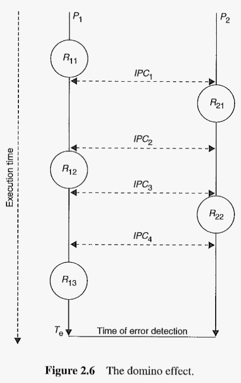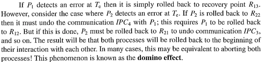 An edge case in Backward Error Recovery, where both processes might end up being terminated. This is illustrated through figure 2.6