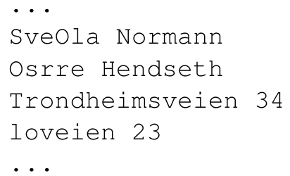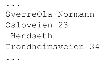 Some times the program prints strange errors in the address list (Sverre Hendseth and Ola Normanns entries are mixed up):