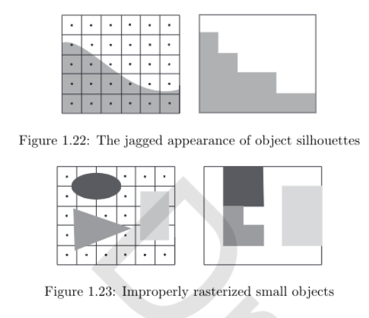 Since the pixels have a small area we can get visible aliasing effects.