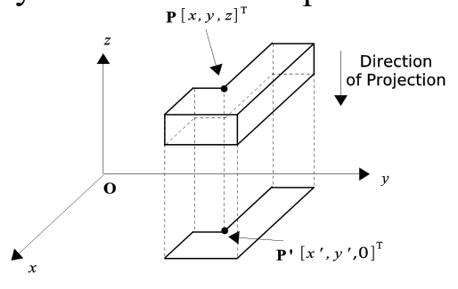 By using one of the main planes as the plane of projection (in this case, the plane), we can project a point onto by using the following matrix