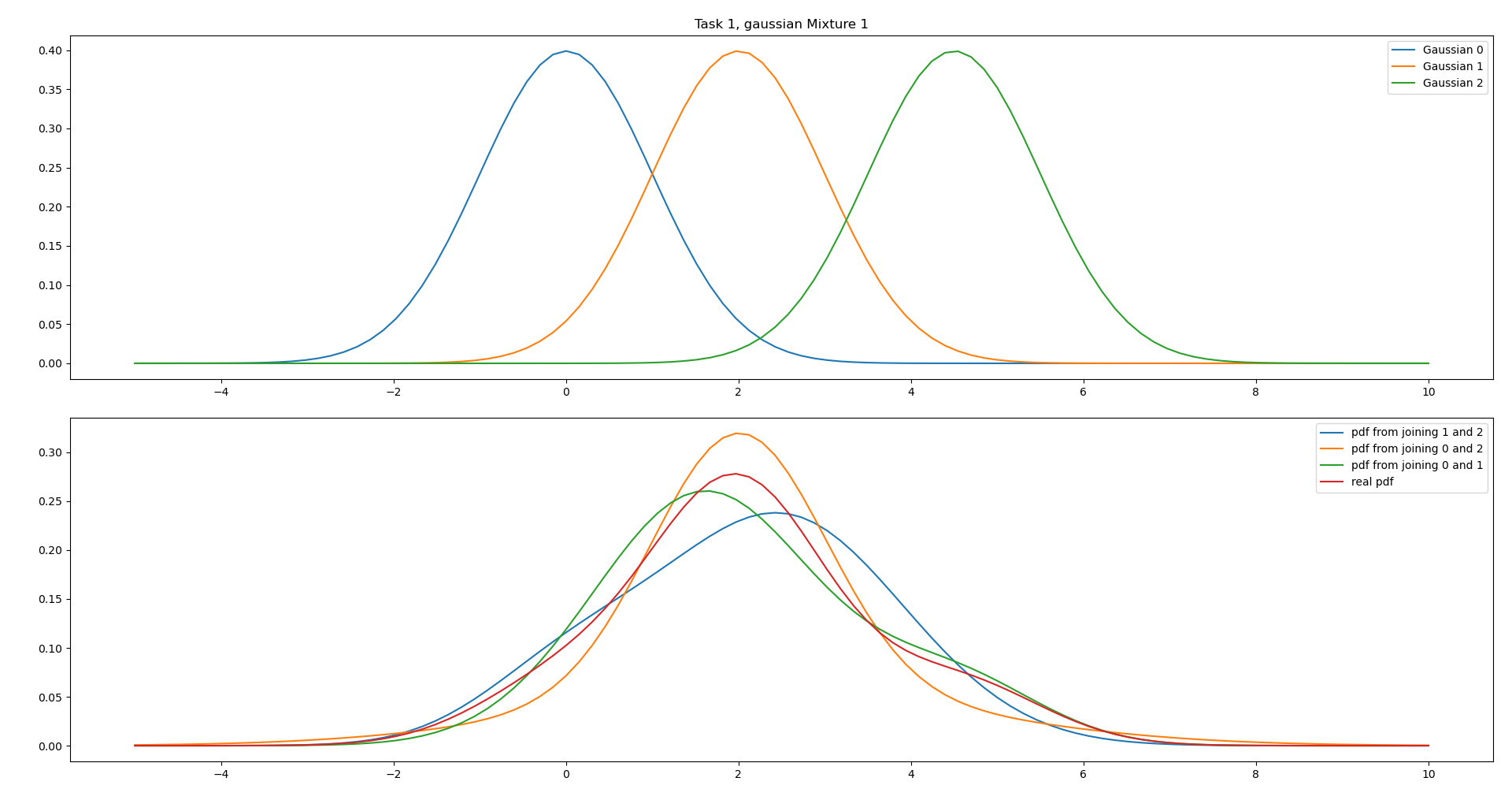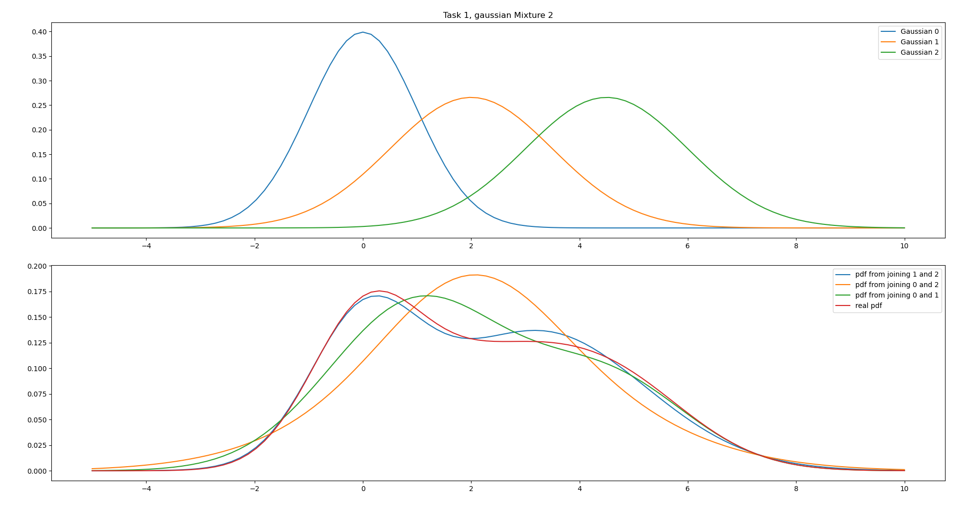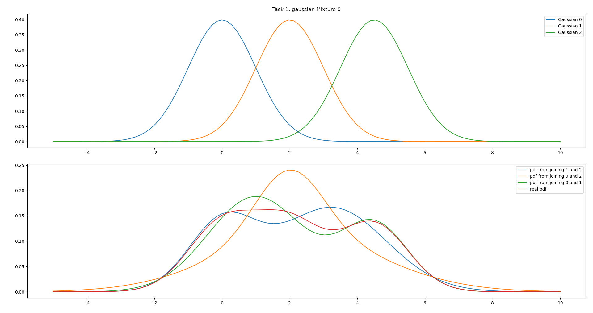 We can see that combining both Gaussian 0 and 1, and Gaussian 1 and 2 gives good results, but the peak of 0 and 1 is too low. Therefore combining 1 and 2 is the best option.
