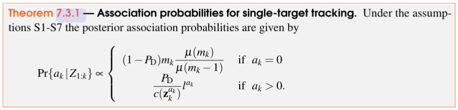 P{a_k|Z_{1:k}} = assoc_probs[a_k] (corollary 7.3.3)